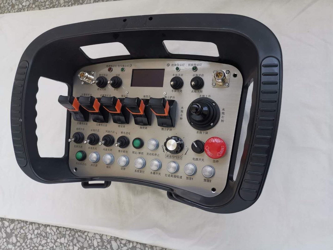 1.LED gösterge ışıklı 16 düğme, kontrollü son cihaz, eylemin yürütülüp yürütülmediğini onaylar ve ardından CAN veri yolu denetleyicisi aracılığıyla uzaktan kumanda alıcısını geri beslemesi ve yanması için bilgilendirir.Fonksiyonları şu şekildedir: 4 çalıştırma kolu iki hareket hareketi, 5 çalıştırma kolu kesme kolu hareketi, 7 palet hızı düşük, 8 palet hızı yüksek, 10 saniye taşıma başlatma ve durdurma, 11 hidrolik motor çalıştırma ve durdurma, 13 yük yıldızı tekerlek ileri çalıştırma ve durdurma, 14 Yük yıldız tekeri geriye doğru start ve stop, 16 ileri hareket ve start stop, 17 geri hareket ile start ve stop, 19 kesme düşük hız, 20 kesme yüksek hız, 22 arka kaldırma silindiri geri çekilmiş, 23 arka kaldırma silindir uzatılmış, 24 ön kaldırma silindiri geri çekilmiş, 25 ön kaldırma silindiri uzatması, 32 makaralı sarma başlatma ve durdurma, 33 makara ödeme başlatma ve durdurma, 35 araç aydınlatma anahtarı, 36 bıçak başlı su püskürtme başlatma ve durdurma, 38 kemerli cihaz uzatma açılıp kapanma, 39 kemerli cihaz daralması Açma-kapama, 41 küçük platform açılıp kapanma, 42 küçük platform açılıp kapanma.